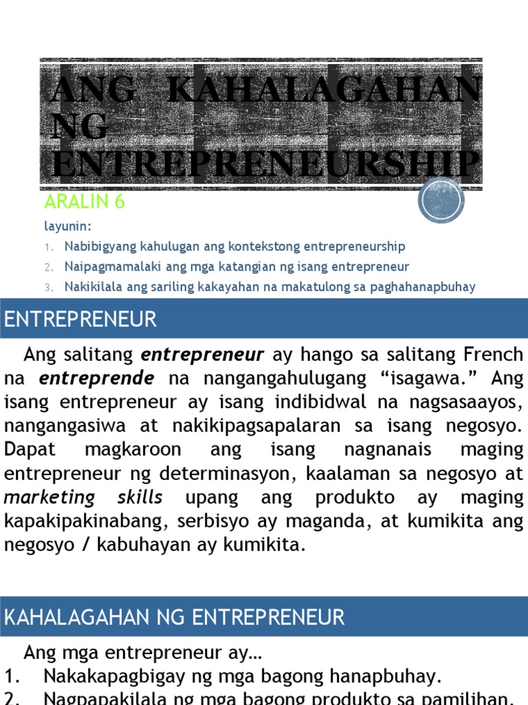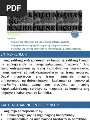 Aralin 10 Ang Kahalaganahan Ng Entrepreneurship Sa Ekonomiya At Lipu