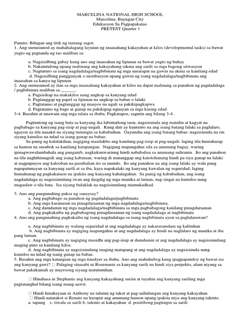 Nakatutulong sa pagiging marahas sa sarili at sa ibang tao. Nakatutulong sa pagiging marahas sa sarili at sa ibang taob. Ano-ano ang kakayahan at kilos na inaasahan sa mga nagdadalaga o nagbibinata.