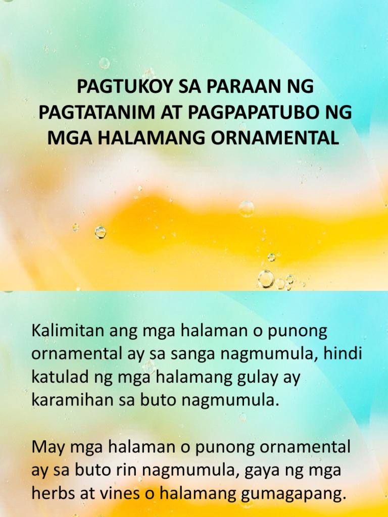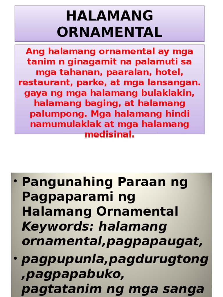Bakit mahalaga ang wastong pamamaraan sa pagtatanim ng halamang ornamental. Basahin ang mga dapat mong gawin at sundin ang mga pamamaraan sa paggawa. Posted on January 2 2021 by. Natatalakay ang pakinabang sa pagtatanim ng halamang ornamental.