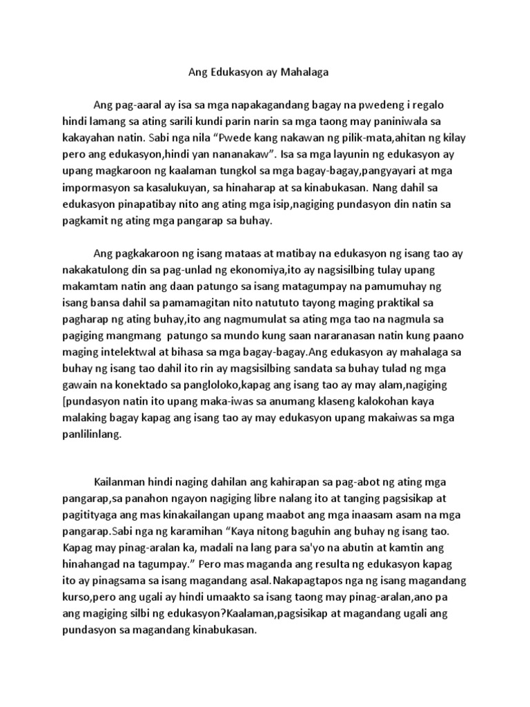 Ang edukasyon ay mahalaga dahil. Mahalaga Ito dahil dito nakasalalay Kung gaano mo kakilala Ang sarili mo o gaano nila kakakilala Ang sarili mo. Ang mga magulang ang. Ang pagiging isang mabuting mamamayang pilipino ay mahalaga dahil Para sa ikabubuti ng ating komunidadIkabubuti ng ating bansaIkabubuti ng mamamayanMeron tayong kalayaanPag kakapantay-pantay Trexies CarryOnLearning.