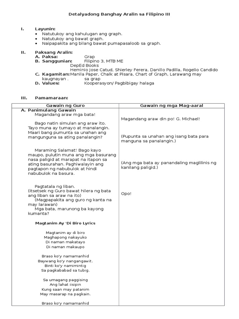 Detalyadong Banghay Aralin Sa Filipino Iii