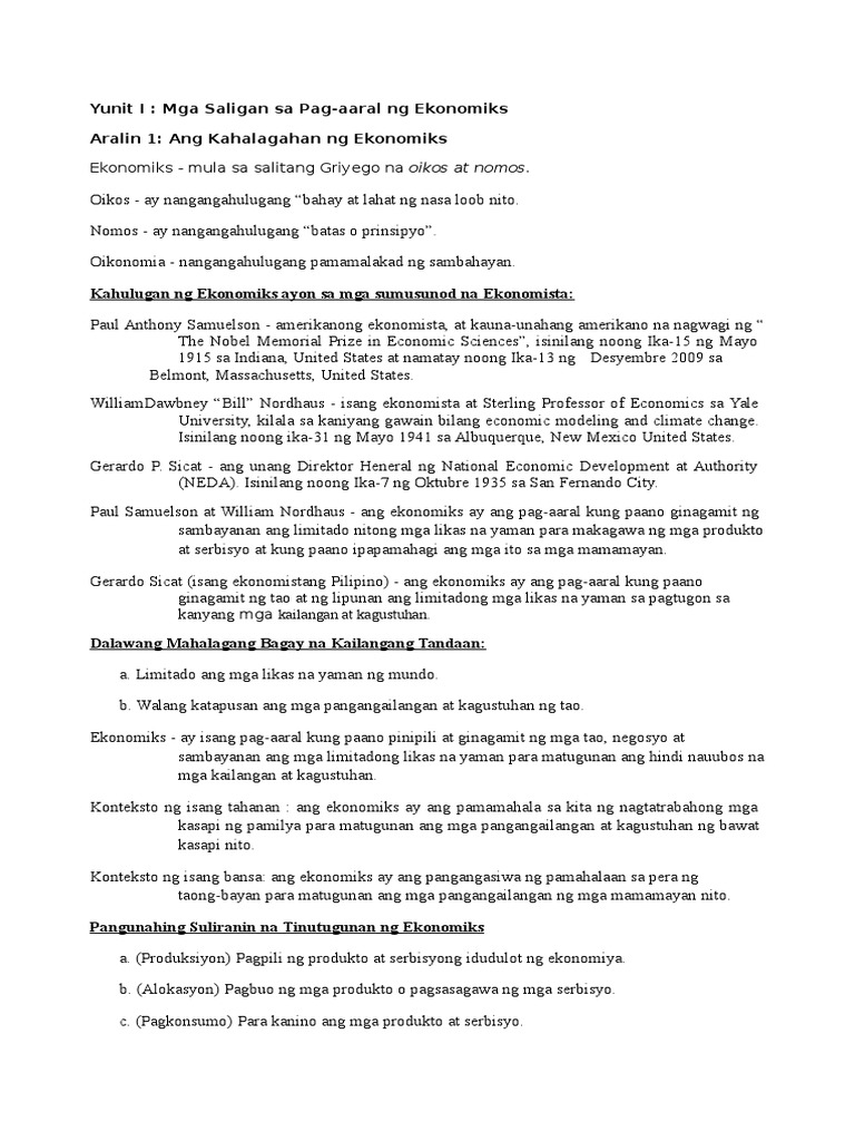 Pero para masagot ang pang-ekonomiyang problema sa huli palawakin natin ang mahalagang argumento dito sa ganun makamit ang pagkakaugnay na mahalaga sa anumang syentipikong pag-aaral. Mahalagang pag-aralan ang ekonomiya at o ekonomiks para matutunang magsumikap ang iba para hindi mapapabilang sa unemployed rate ng bansa 6. Pinangunahan ni Adam Smith ang pagtataguyod ng kapitalismo sa kaniyang akdang The Wealth of Nations noong _____.