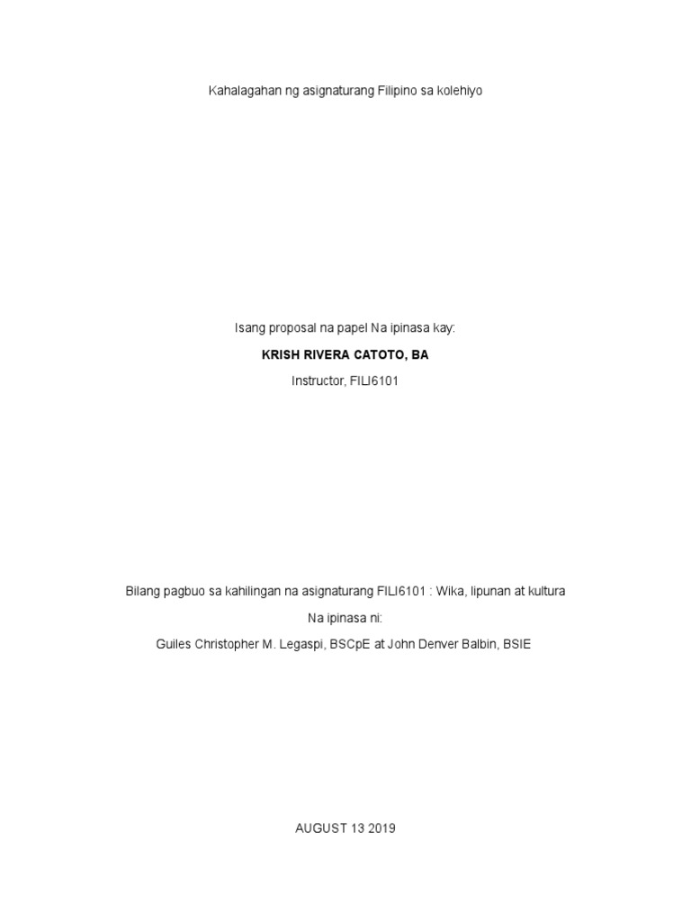 Menchu Dela Cruz Guro sa Filipino II Punong-guro Ika- 12 ng Pebrero 2016 DAHON NG PAGPAPATIBAY Ang pag-aaral na ito na may pamagat na Kahalagahan ng asignaturang Filipino sa Kolehiyo ay iniharap at inihanda ng mga mag-aaral na sina Albao Ronald Guilaran Rema Salonga Jovi Lloyd C Santiago Franco NiƱo R Tseng Shawnjojo i. Ang kursong kontekstwalisadong komunilasyon sa filipino ay isang praktikal na kursong nagpapalawak at nagpapalalim sa kontekstwalisadong komunikasyon sa wikang filipino ng mga mamamayang pilipino sa kani kanilang mga komunidad sa partikular at sa buong lipunang pilipino sa. Para mapaunlad naten ang ating bansa.