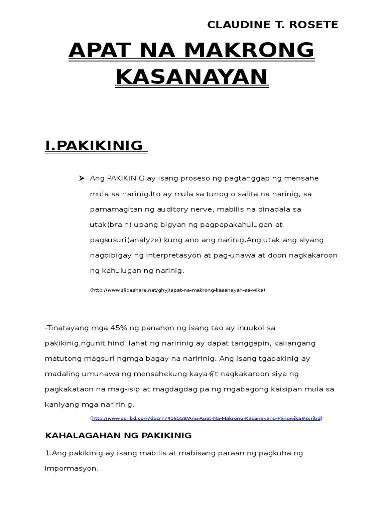 Apat Na Makrong Kasanayan Sa Wika