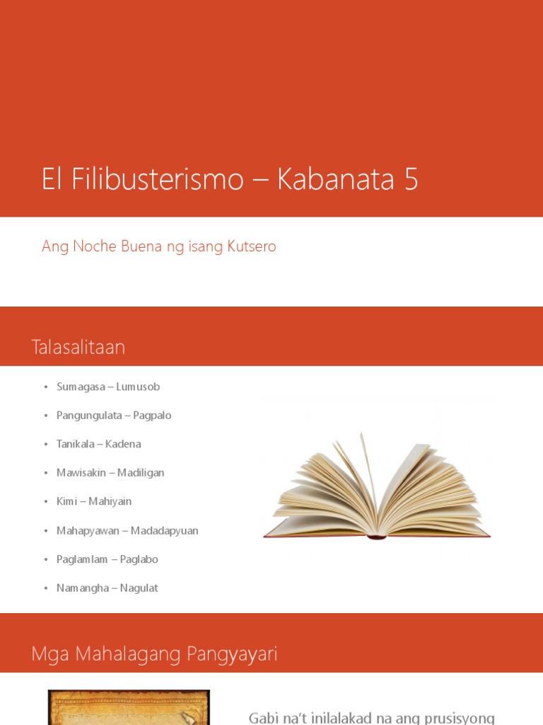 Rodriguez - TatelBuodGabay na TanongSagotElFilibusterismo ElFikibusterismoKabanata5BuodKabanata5GabayElFilibusterismo. El Filibusterismo BuodPahiwatig ng Bawat Kabanata Historical Fiction. Ang salamin ay ang ibabawHindi mahalaga kung ano ang nasa ilalim nito dahil anuman ang nasa ilalim hindi ito makaka.