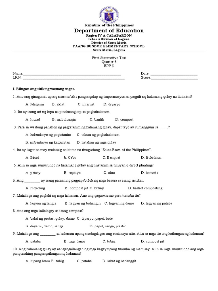 Upang madagdagan ang kamalayan sa bibliya ng mga taong nagsisimba INDICATORS 1. Papel sanga plastic 9 Mahalaga ang sa halaman upang madagdagan ang sustansya nito. Alin sa mga ito ang kailangan ng halaman.