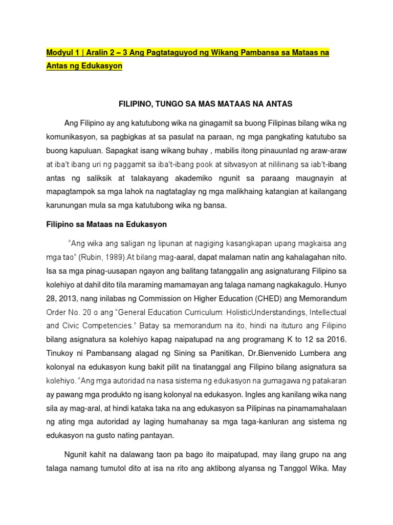 Kung ating titignan ang kasaysayan isa sa mga instrumento ng rebulosyon ang panitikan. ANG PAGTATAGUYOD NG WIKANG PAMBANSA SA MATAAS NA ANTAS NG EDUKASYON AT LAGPAS PA Makasaysayan ang taong 2014 sa larangan ng pagtataguyod ng wikang Filipino sapagkat ito ang taon ng pagtatag ng tanggol Wika. Bakit hindi dapat alisin ang asignaturang filipino sa kolehiyo.