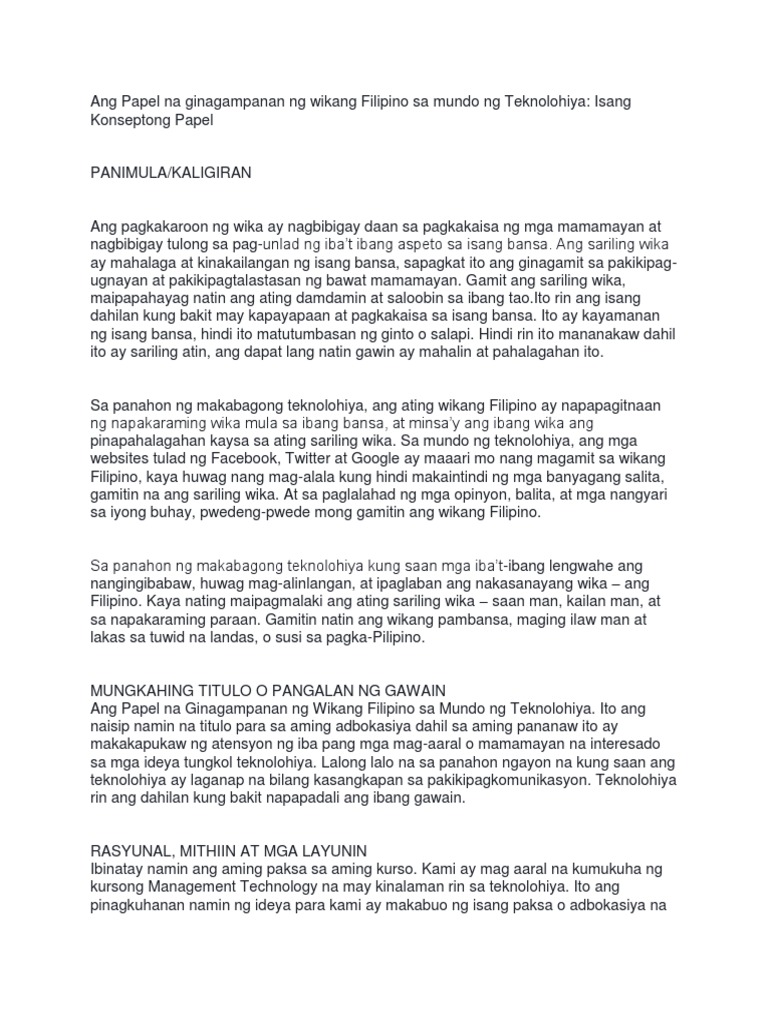 Ang Papel Na Ginagampanan Ng Wikang Filipino Sa Mundo Ng Teknolohiya