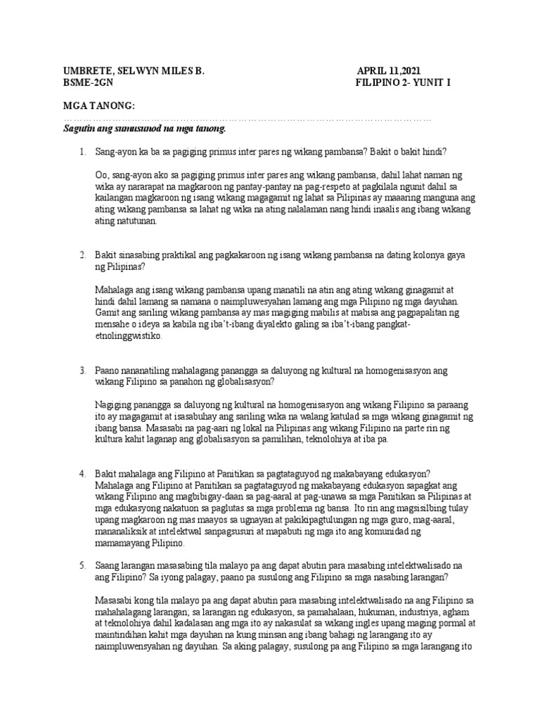 3 on a question. Marami man ang tutol ay mayroon pa ring sumasang-ayon sa pag-aalis ng CHED ng asignaturang Filipino sa kolehiyo. 3 question Bakit mahalaga panatilihin Ang asignaturang Filipino Sa antas kolehiyo.