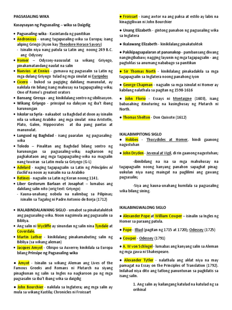 Kahulugan Layunin At Kahalagahan Ng Pagsasalin Docsity