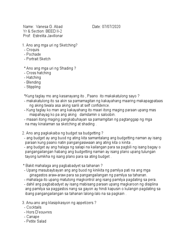Irespeto ang bawat isa. Ang paglikha ng isang badyet ay palaging mahalaga maging para sa mga nag-iisang tao o mga pamilya ngunit sa mga oras ng mga mahihirap na isyu sa ekonomiya kapag walang maraming seguridad sa trabaho mas mahalaga pa. Ang ating mga pamilya ang nagsisilbing unang guro sa atin.