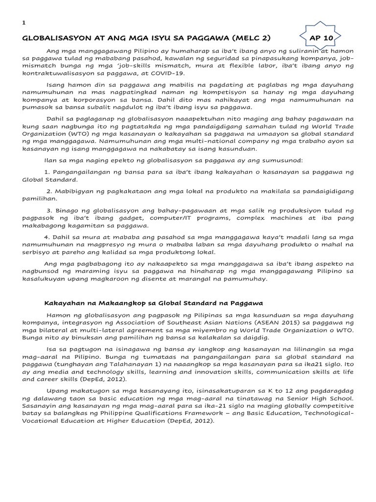Globalisasyon At Ang Mga Isyu Sa Paggawa 2