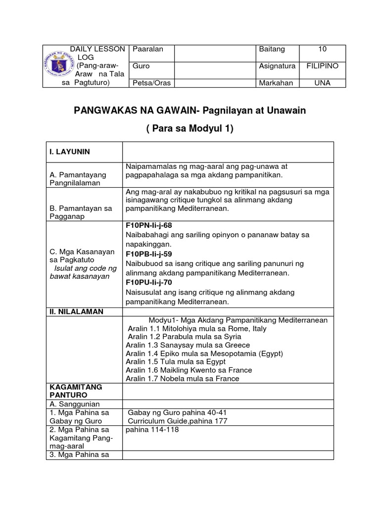 Pdf Panitikang Pilipino Filipino Modyul Ng Mag Aaral Franchezca Gobrin Academia Edu