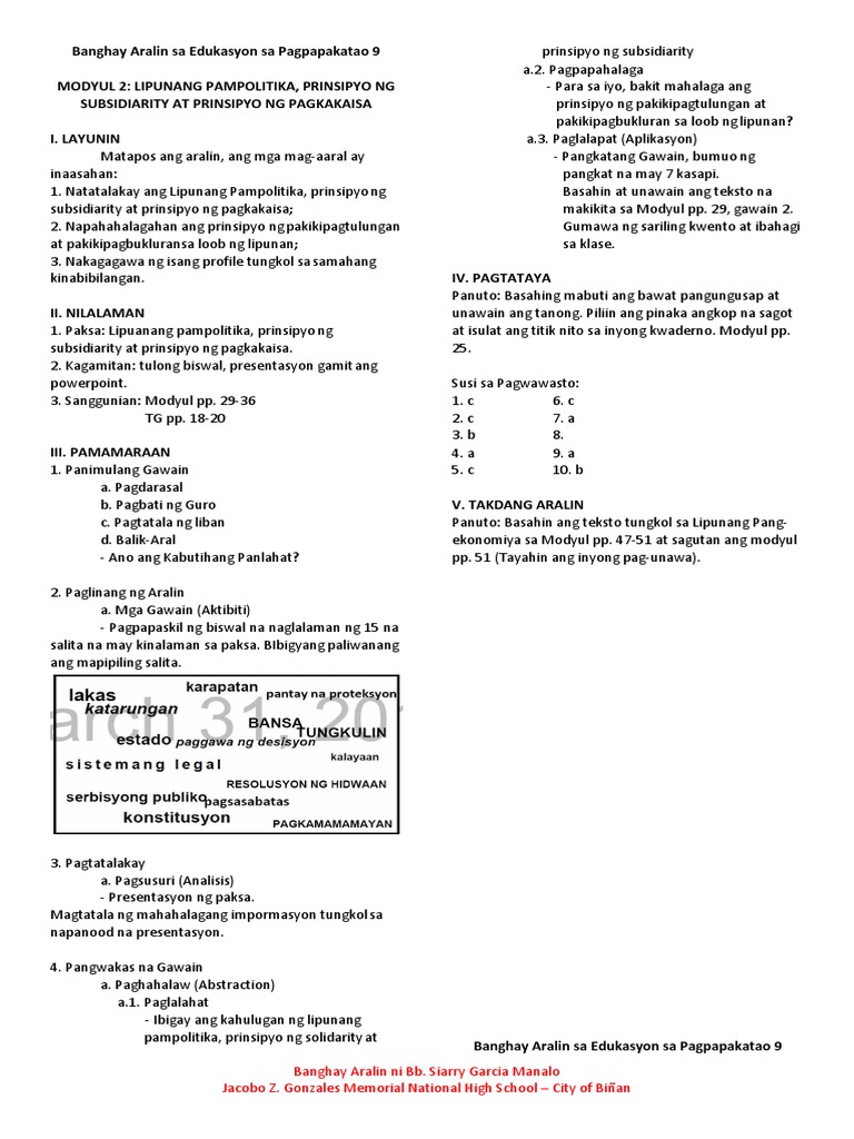 Bakit mahalaga ang prinsipyo ng pakikipagtulungan at pakikipagbukluran sa loob ng. Paano nakaaapekto sa takbo ng gawain ng pamilya paaralan at barangay ang kawalpagkakaisa4. Matulungang mabigyan ng trabaho o negosyo. Bakit mahalagang makita ang pagpapatakbo sa lipunan bilang kapuwa-pananagutan ng pinuno at mamamayan.