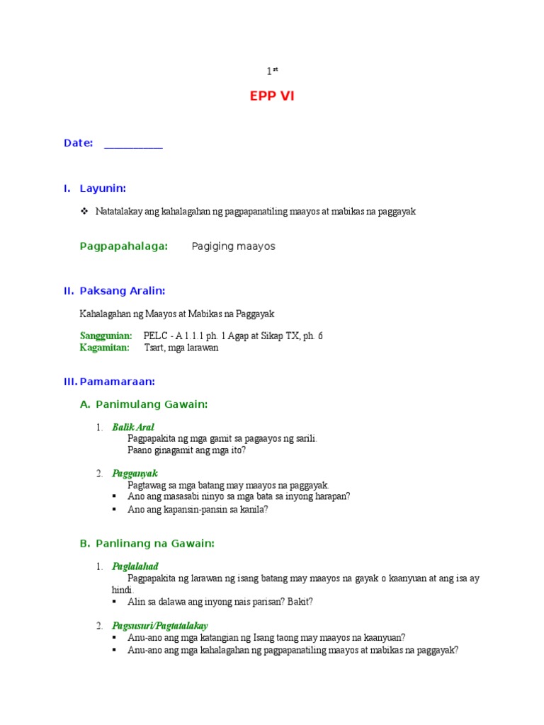 Epp He Aralin 8 Pagpapanatili Ng Maayos Ang Sariling Tindig