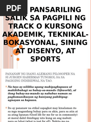 Mga Pansariling Salik Sa Pagpili Ng Track O Kurso Daan Sa Maayos At M