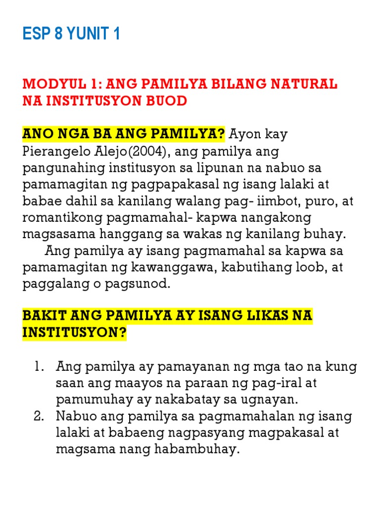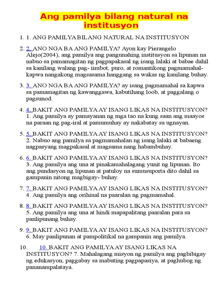 Ang Pamilya Ay Isang Likas Na Institusyon